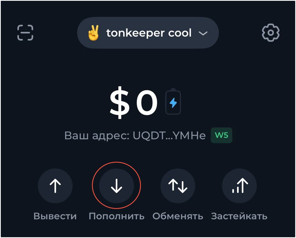 Tonkeeper поддерживает сеть TON и USDT (TRC20), поэтому пополнить баланс можно несколькими способами: